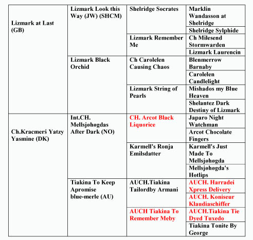| Lizmark At Last (GB) | CH.Kraecmers Yatzy Yasmine (DK) |